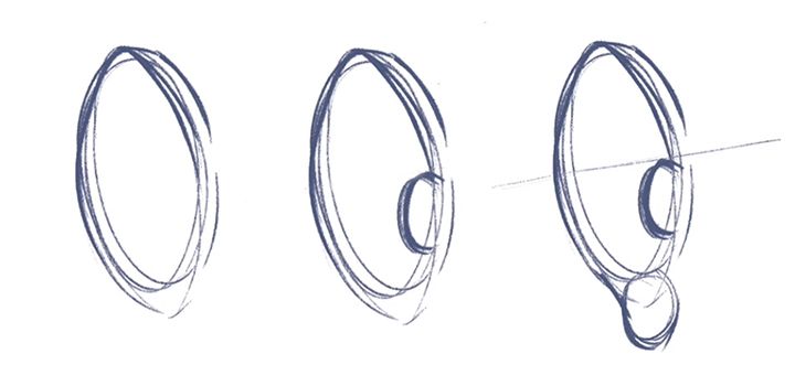 Draw the shape of the desired ear, then sketch in the inner ear detailing for the cartilage on the inner part of the ear, then draw in the cartilage detailing on the further parts of the ear.